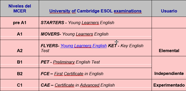 Si desea, igualmente, averiguar la versión en español sobre todos los exámenes de Cambridge, puede visitar la página de Cambridge ESOL.